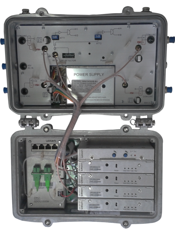 Overview        Lootom GDOU8000 series multi-function optical node, rolls EOC, CATV optical receiver, ONU, Ethernet sender and receiver, Ethernet switch and other products functions in one.According to the development of the two-way CATV network, and network diversification, all function modules of GDOU8000 series multi-function optical node support hot plug with on-demand configuration, flexible networking and smooth upgrade.